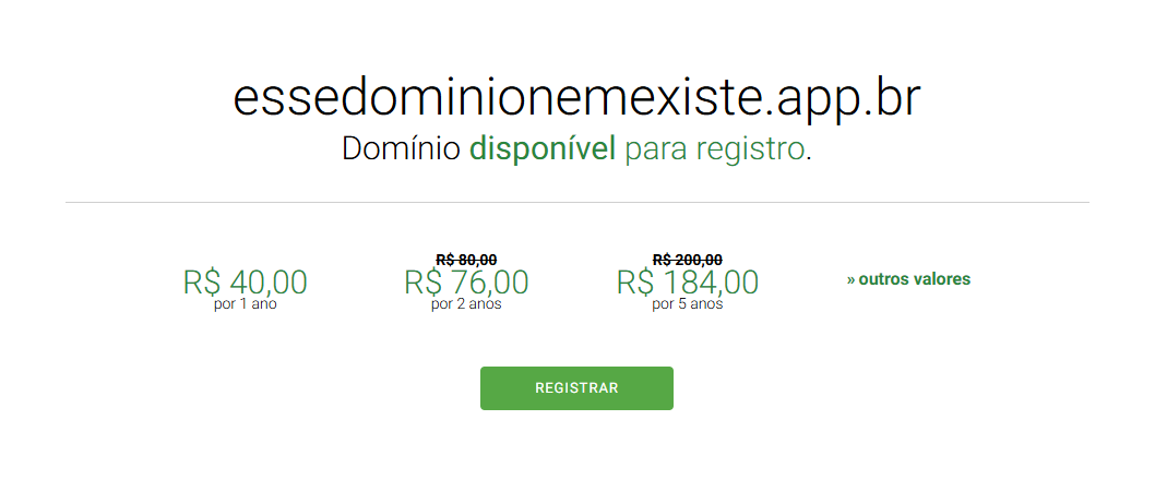 Um exemplo prático: essedominionemexiste.app.br, que não está registrado (consulta 08/04/2026)