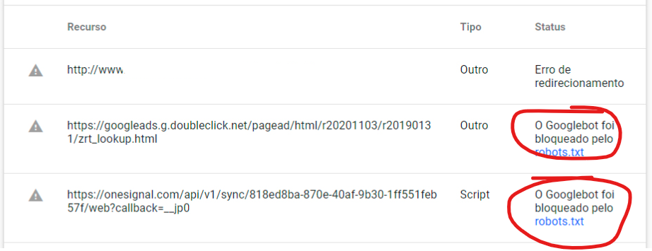 Ao testar a compatibilidade com dispositivos móveis, foi identificado que o Googlebot está sendo bloqueado.